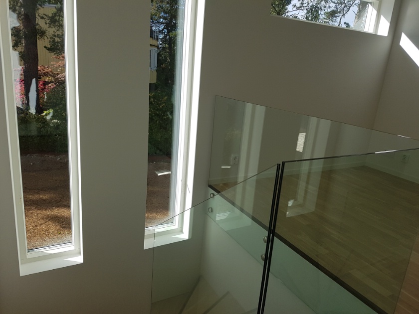 Glasräcke med 6 + 6 dubbelhärdad lamellglas.